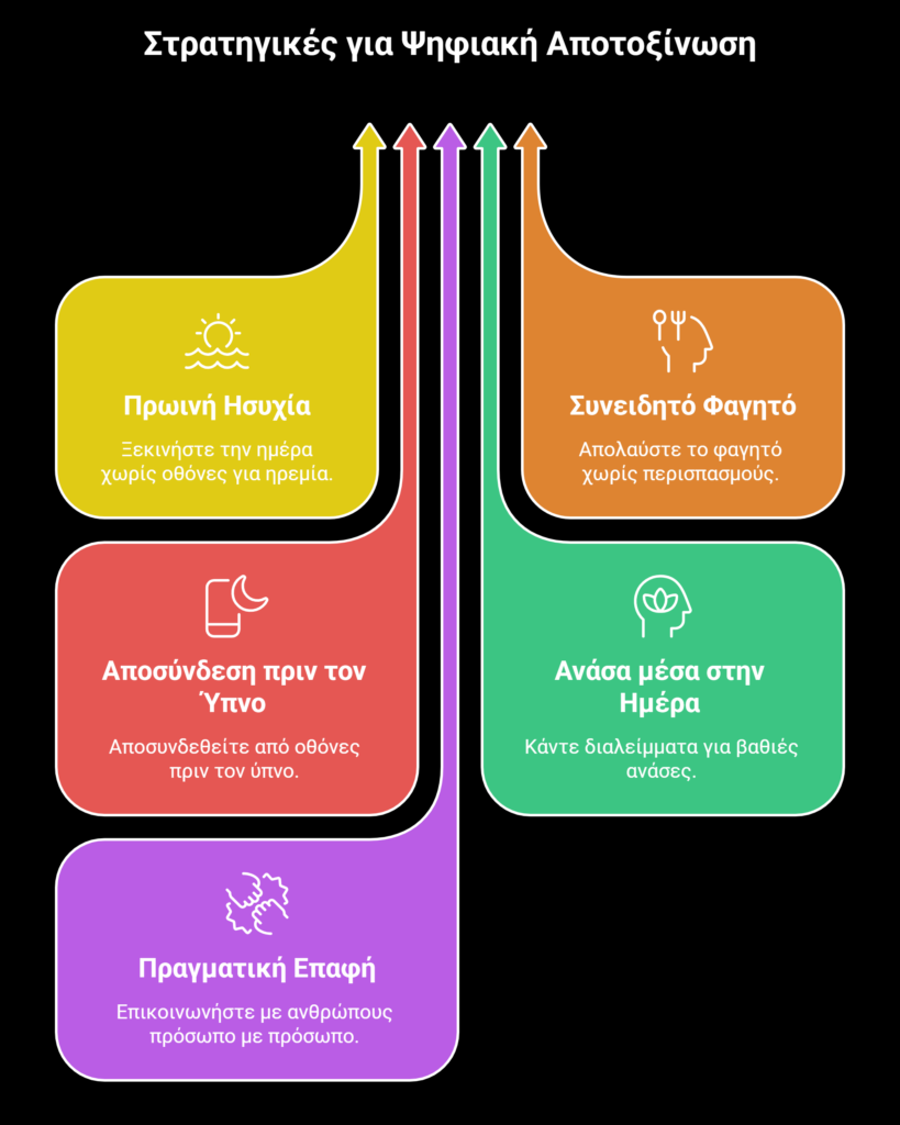 Η υιοθέτηση αυτών των 5 απλών ρουτινών δεν είναι μια δύσκολη υπόθεση. Είναι μικρές, καθημερινές επιλογές που, στο σύνολό τους, χτίζουν μια ισχυρή άμυνα απέναντι στο ψηφιακό στρες. Δοκιμάστε τες για μία εβδομάδα και παρατηρήστε τη διαφορά στην ενέργεια, τη διάθεση και την ποιότητα του ύπνου σας. Η τεχνολογία είναι εδώ για να μας εξυπηρετεί, όχι για να μας εξουθενώνει.